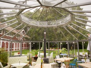 Detta är ett prototyp hus som vi testade. Det är exakt samma modell som vårt lustväxthus 27m2 men har endast 11 kanter istället för 12. Det var tyvärr inte så populärt som vi hoppades på och de har legat på vårt lager i några år. Några av dem har lite missfärgningar pga av en vattenskada. Därav det låga priset. Eftersom vi inte har byggt något än så är vi lite osäkra på den exakta diametern.